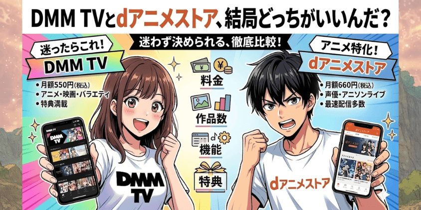 この記事では、DMM TVとdアニメストアを徹底比較する。